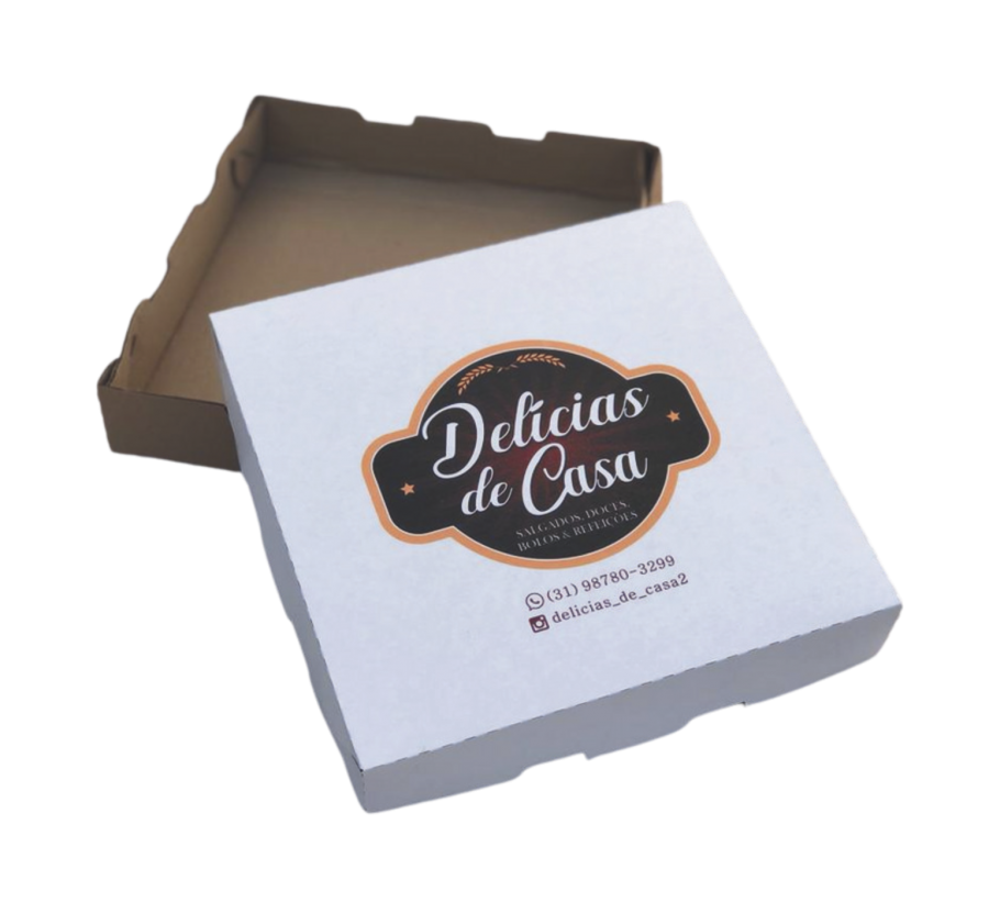 Caixa com Tampa Personalizada para doces, salgados, pizzas. Montagem fácil com abas lateral de fechamento.